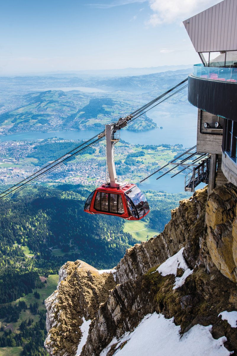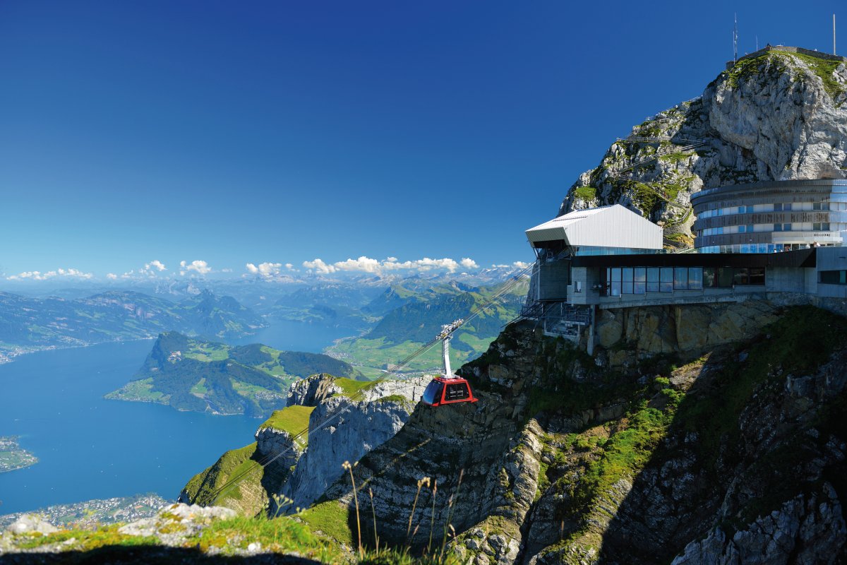Von Kriens aus bringt Sie die Gondelbahn sanft durch dichte Wälder und über grüne Wiesen bis zur Fräkmüntegg. Dort steigen Sie in die moderne Luftseilbahn "Dragon Ride" um, die ihren Namen zu Recht trägt: Schnell, leise und mit großen Panoramafenstern gleiten Sie nahezu schwerelos den Felsen entgegen. Die Ausblicke auf die umliegenden Berge und das Blau des Vierwaldstättersees werden Ihnen den Atem rauben. Oben auf dem Pilatus angekommen, eröffnet sich Ihnen eine beeindruckende Welt aus Bergen, Wolken und Himmel. Genießen Sie das Panorama, das von den Schweizer Alpen über das Mittelland bis hin zum Schwarzwald reicht. Unternehmen Sie eine kleine Wanderung auf einem der Rundwege oder entspannen Sie auf der Sonnenterrasse des Gipfelrestaurants, wo Sie bei regionalen Spezialitäten den Moment genießen können. Für Abenteuerlustige gibt es sogar die Möglichkeit, den Drachenpfad zu erkunden und in die Mythenwelt des Pilatus einzutauchen. Nach dem Gipfelaufenthalt erwartet Sie ein weiteres Highlight: die Fahrt mit der steilsten Zahnradbahn der Welt. Mit einer maximalen Steigung von 48 Prozent führt die Bahn von Pilatus Kulm hinunter nach Alpnachstad. Auf dem Weg durch schroffe Felslandschaften, dichte Wälder und blühende Alpwiesen erleben Sie den Berg aus einer ganz neuen Perspektive. Nach der Ankunft in Alpnachstad steht unser Bus zur Heimreise für Sie bereit. Ein Atemberaubender Tag mit einzigartigen Eindrücken.